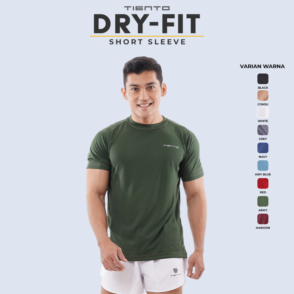 Tiento Kaos Running Dry Fit Baju Olahraga Lari Pria Gym Pakaian Sport Lengan Pendek Pria