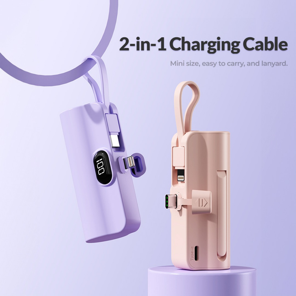 UNEED MiniBox A5 5000mAh Powerbank Mini Lightning Type C Built In Cable - UPB408