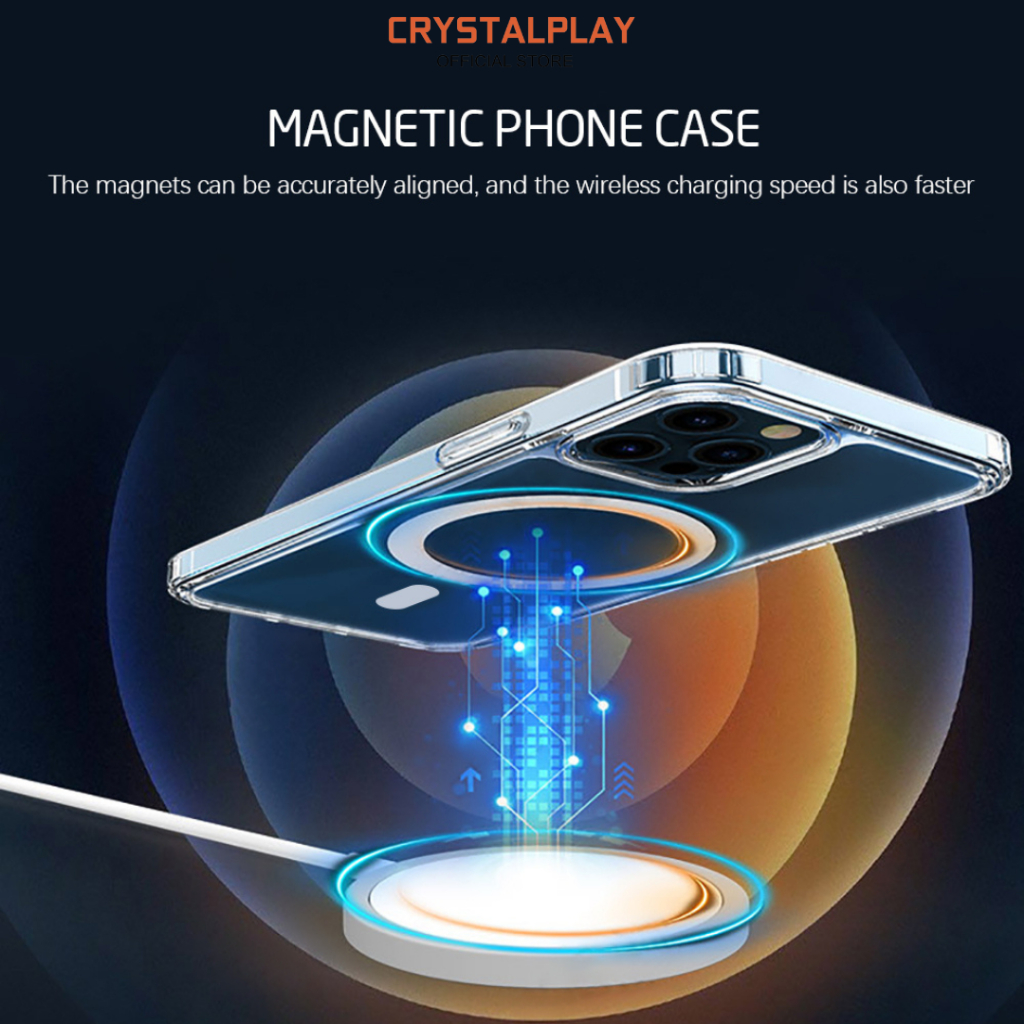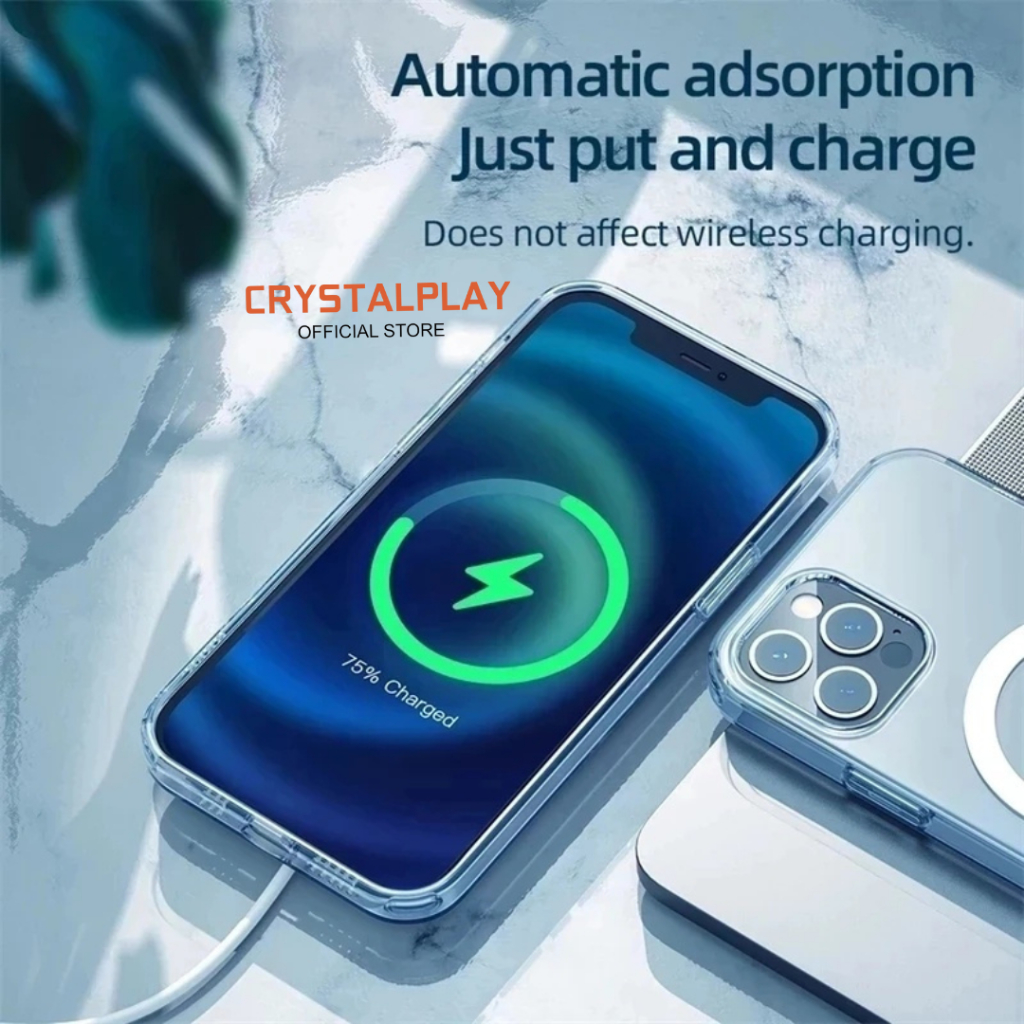 CrystalPlay Magnetic Case for iPhone 15 Clear Hybrid Bumper Casing Magnetik Support Wireless Charging Casing Clear XR 11 12 13 14 15 16 PLUS PRO MAX