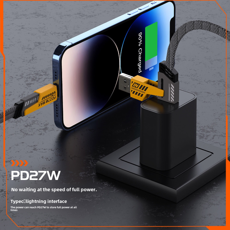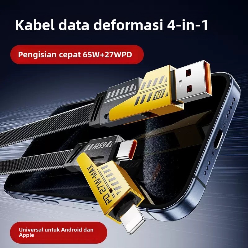 GUKOO Kabel Data 4-in-1 Fast Charge 65W PD - USB to Type C/Lightning Tahan Lama, Cocok untuk iPhone/Android/Laptop