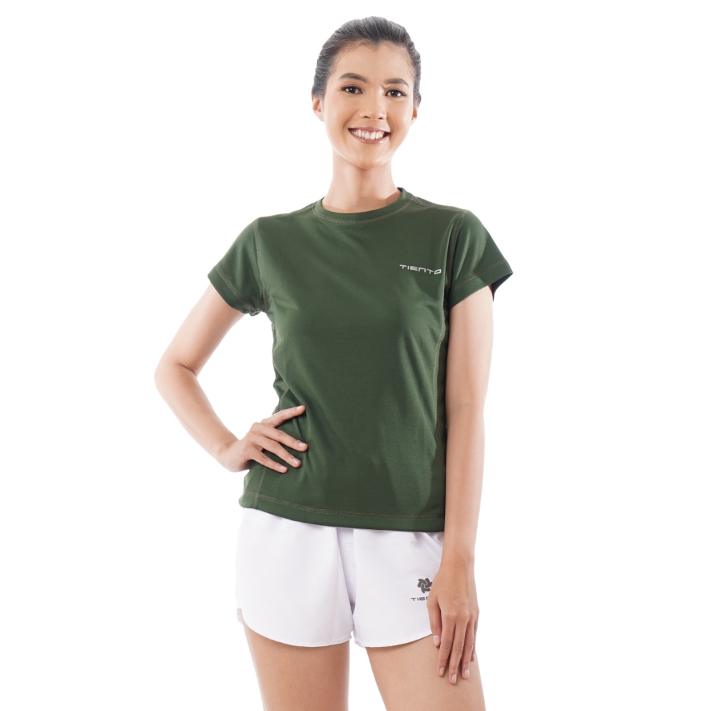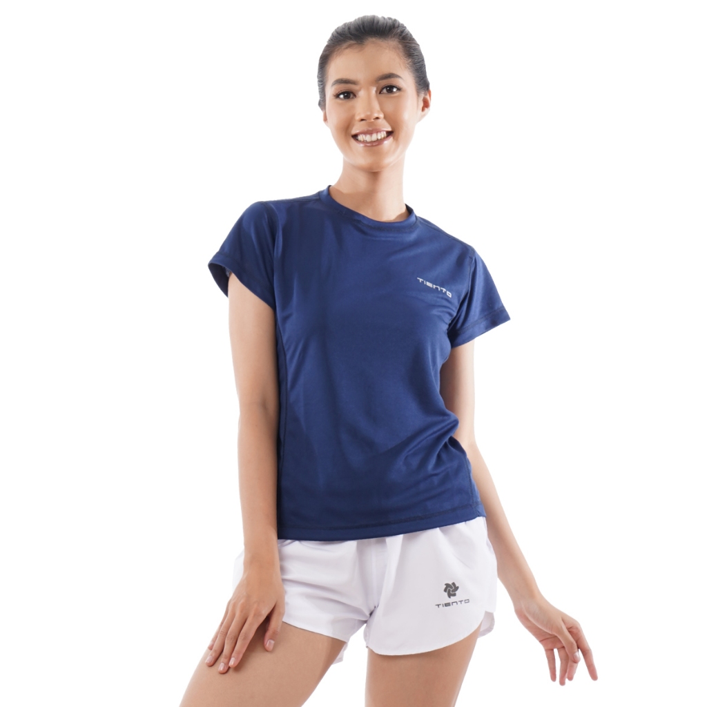 Tiento Kaos Running Dry Fit Baju Olahraga Lari Wanita Gym Pakaian Sport Lengan Pendek