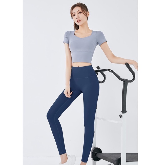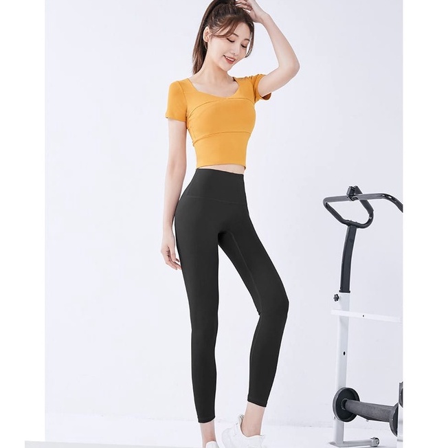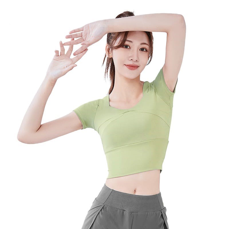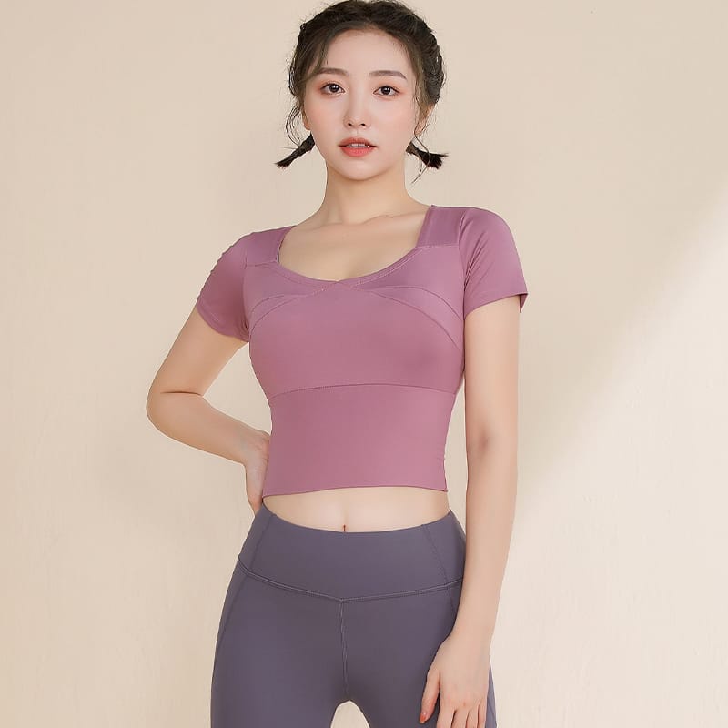 TIMETOSPORT Pakaian Yoga Lengan Pendek Celana Ketat Olahraga Elastis Cepat Kering Atas (Termasuk Bantalan Dada) 1123