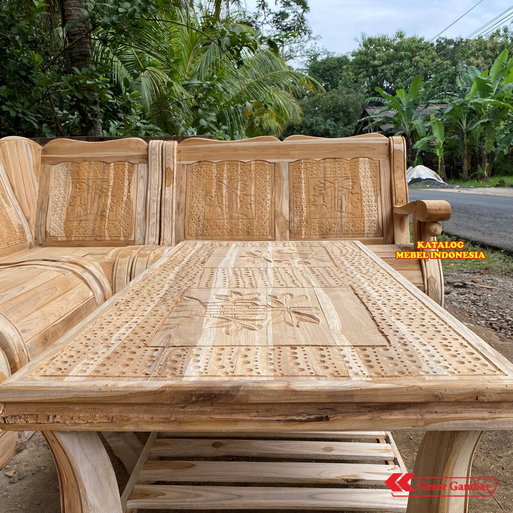 Set Kursi Tamu Sudut Model Gajah Full Jati Motif Bambu