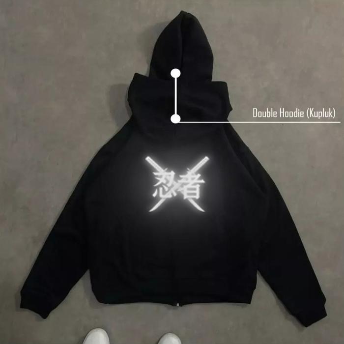 Hoodie boxy reflektif nyala Balaclava Menyala Reflective Zipper Unisex Pria Wanita - Model Terbaru