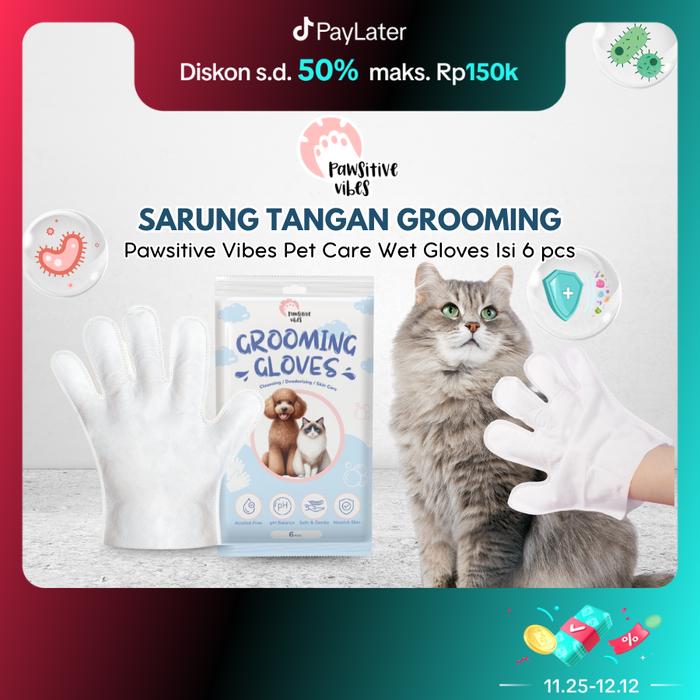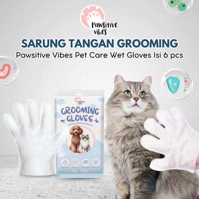 Pawsitive Vibes Pet Care Wet Gloves Grooming Isi 6 pcs - Sarung Tangan Mandi Tanpa Air Tanpa Bilas