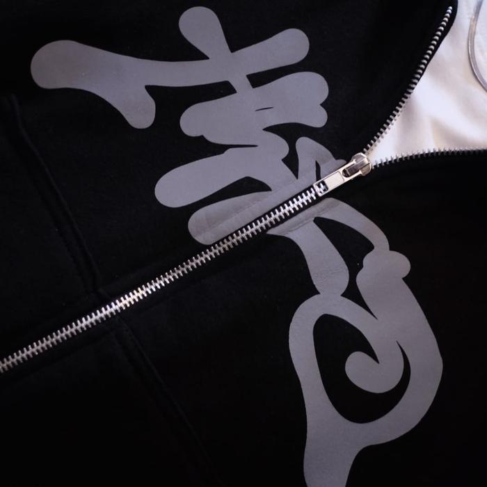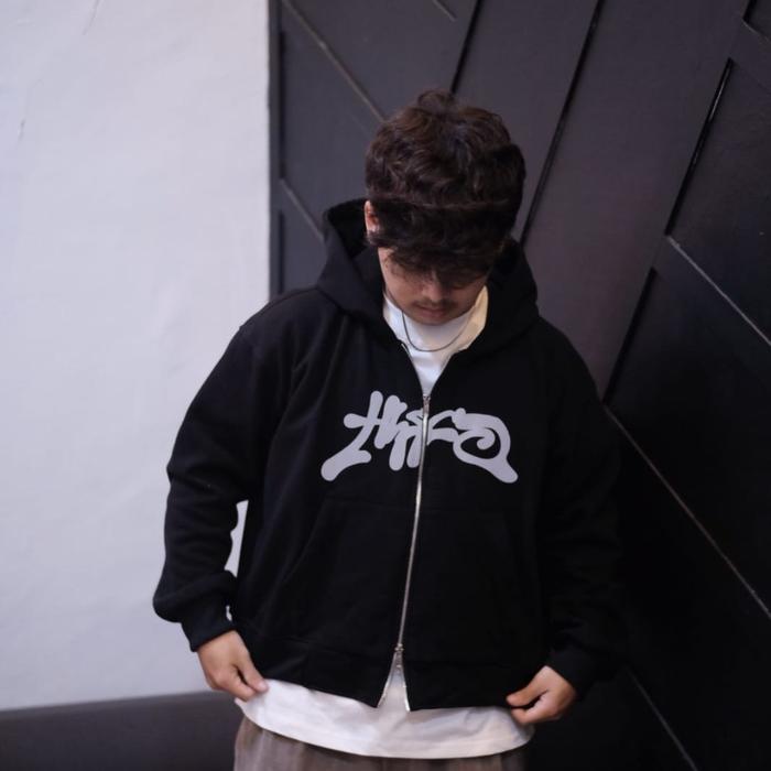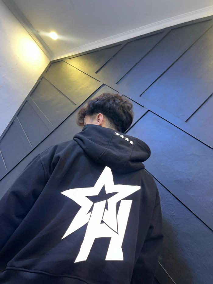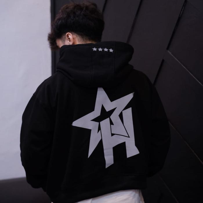 HHSCO - Hoodie Pria Zipper Boxy Metal Star Black Cotton
