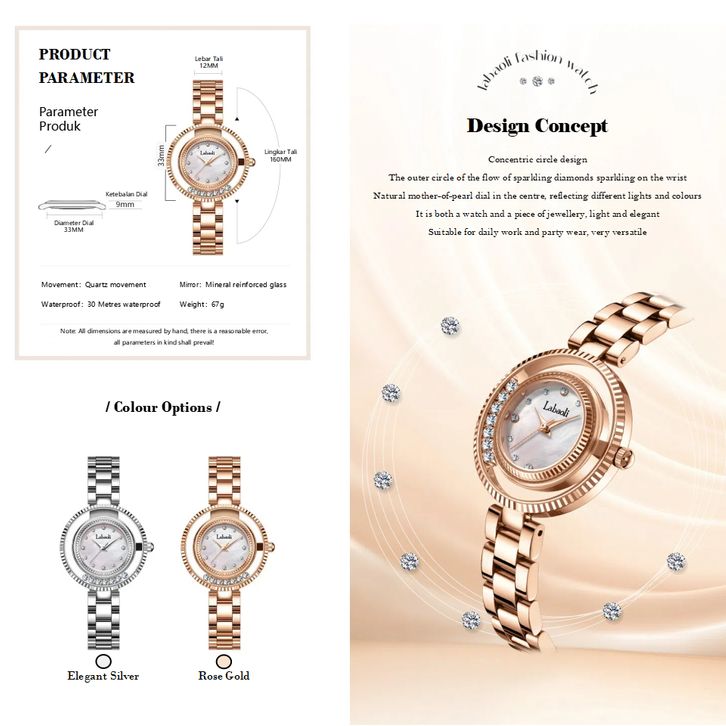 PROMO Jam Tangan Wanita Original Brand Labaoli Anti Air Mewah Dial Rhinestone Cewek Rantai Gold Silver afemns