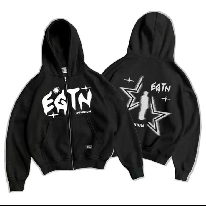 Clavarious - Hoodie Boxy Zipper Star Black Human Basic Jaket Sleting Skena - Boxy Oversize Terbaru