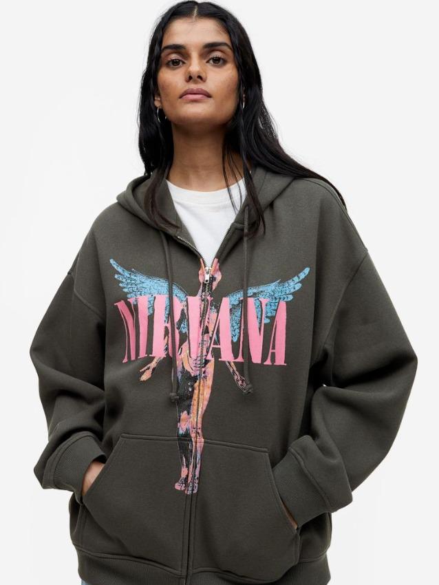 Zipper Boxy NIRVANA IN UTERO PINK BLUE ANGEL Oversize Cowo Cewe Bisa Pakai Lengan Balon - Hoodie