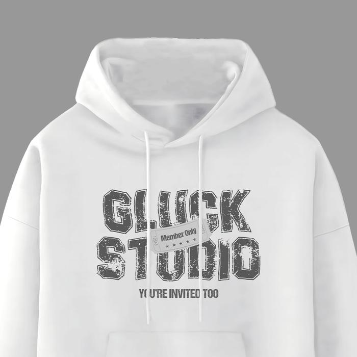 Gluck Hoodie Jumper Boxy Oversized White Unisex StreetWear Soft Cotton Fleece Sweater Pria