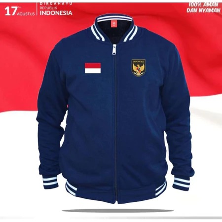 Jaket - Jaket Zipper Varsity Kemerdekaan Indonesia HUT RI KE 80 Jaket Baseball Pria Wanita Original Import Jumbo Oversiz