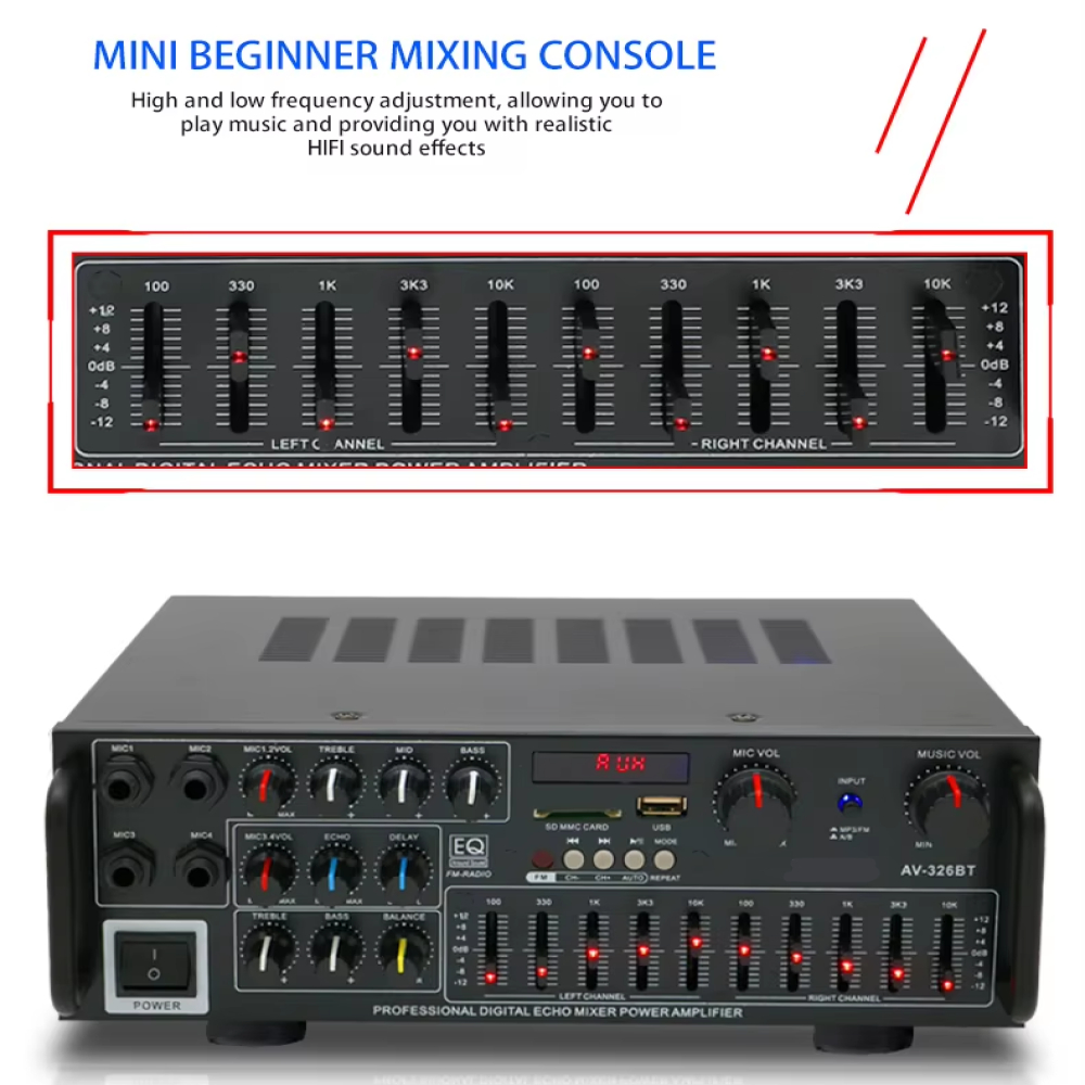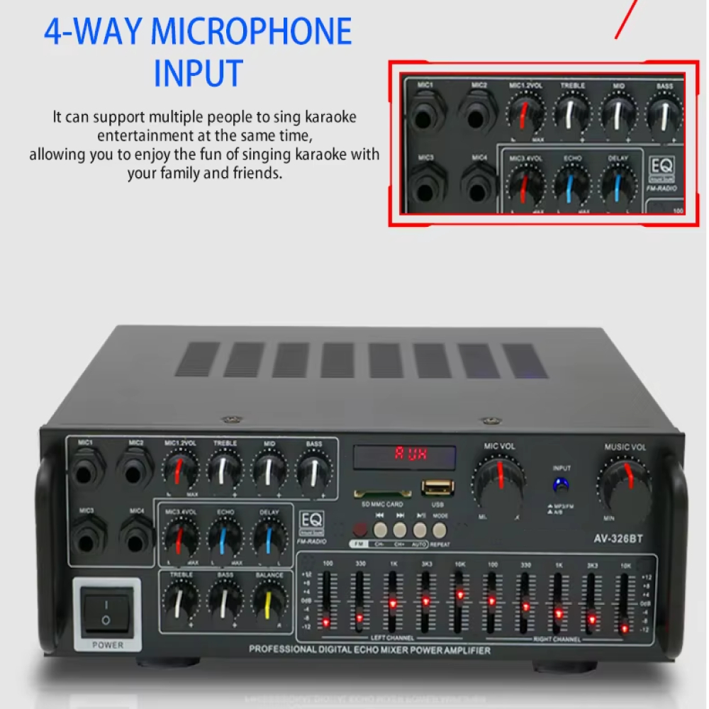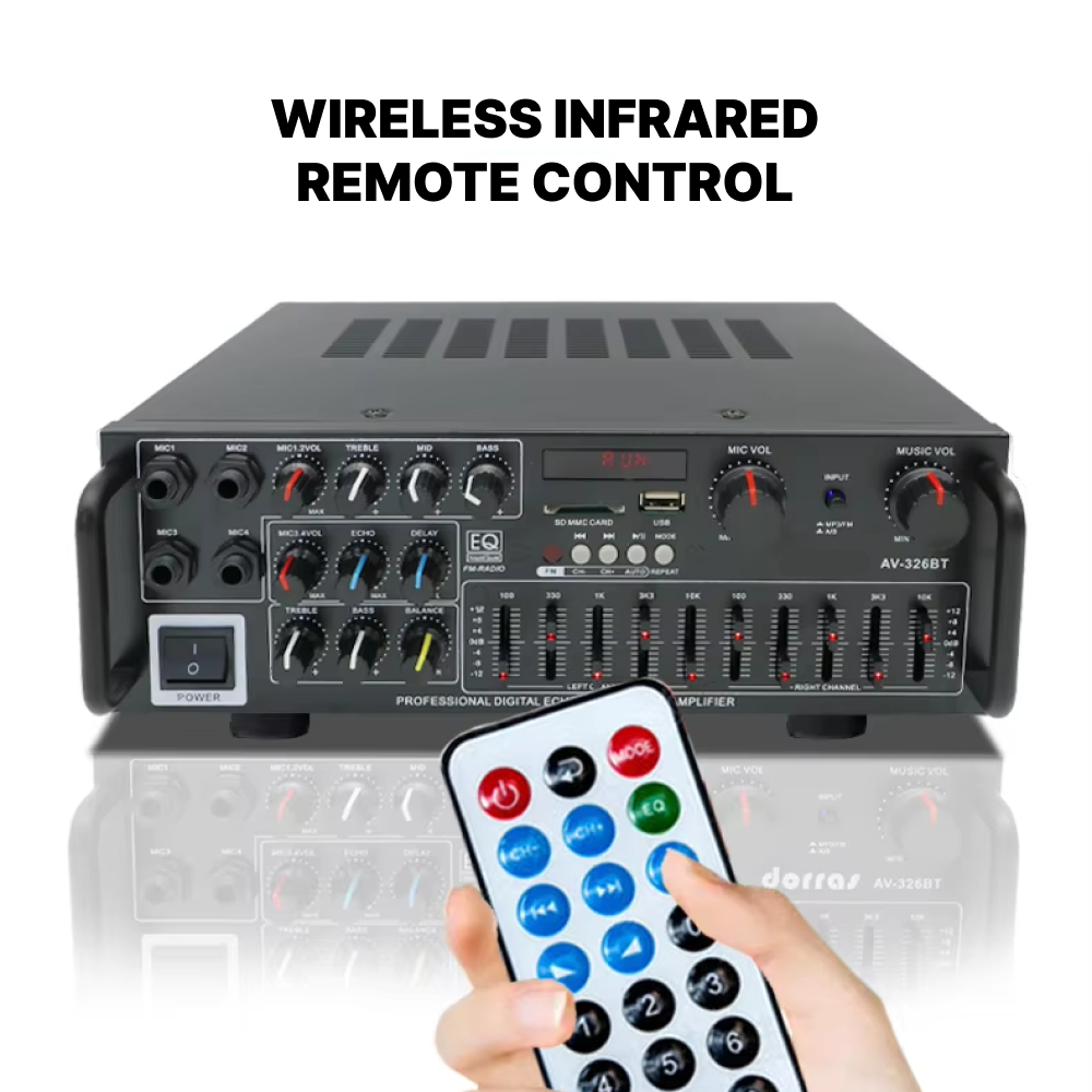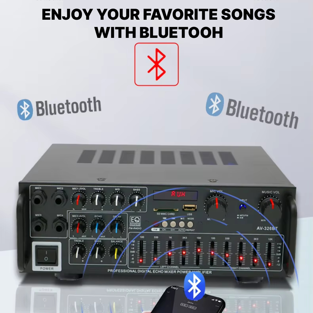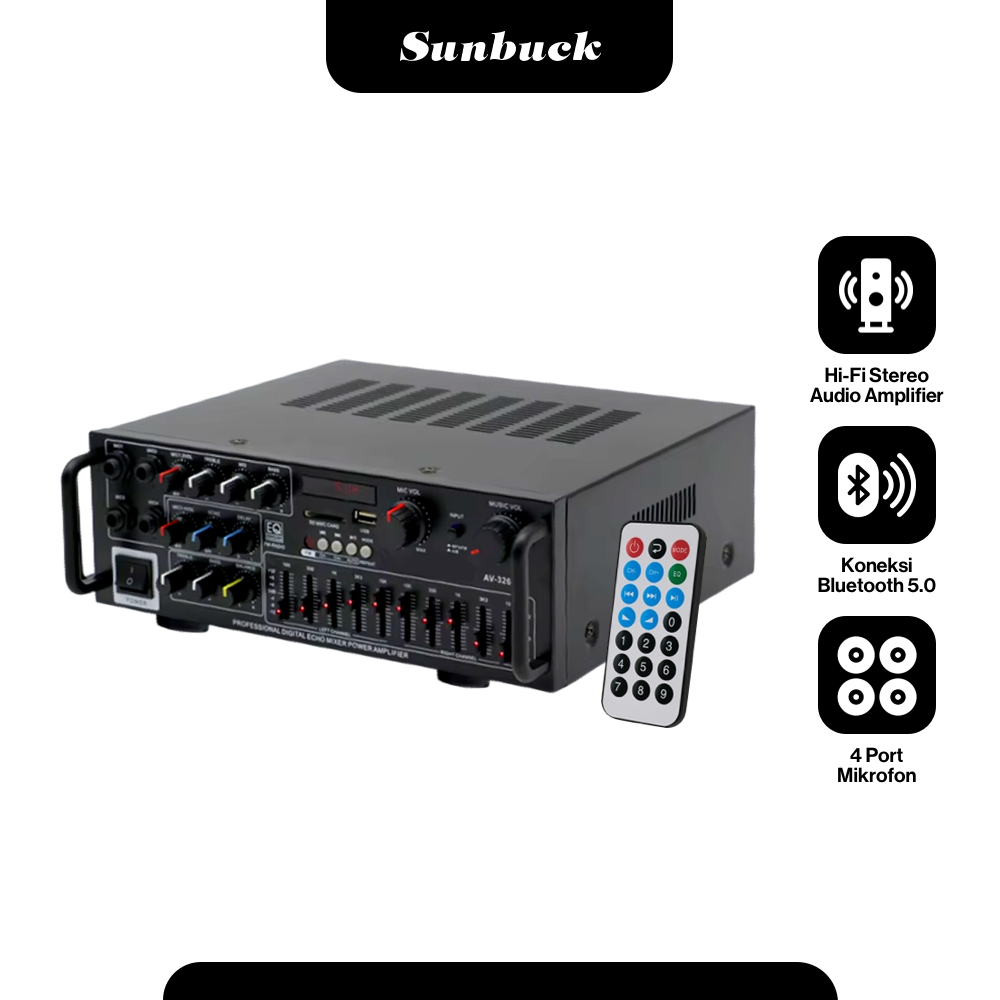 Sunbuck Audio Amplifier Bluetooth HiFi USB Adjustable USB MP3 FM 1000W - AV-MP326BT PRO - Black