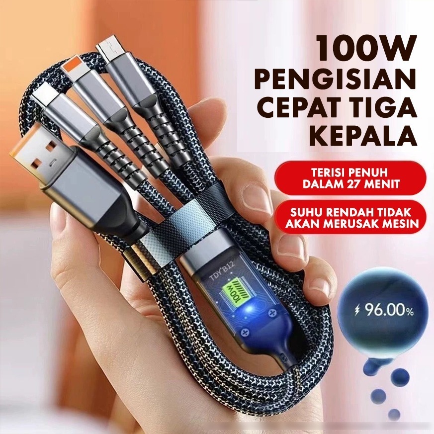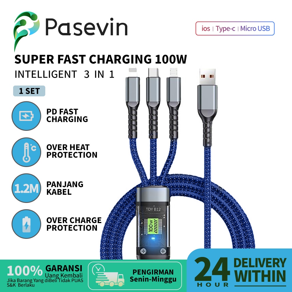 Pasevin Kabel Data Charger Fast Charging 3 in 1 Kabel Lightning Micro USB Type C Black for Android IOS Type-c