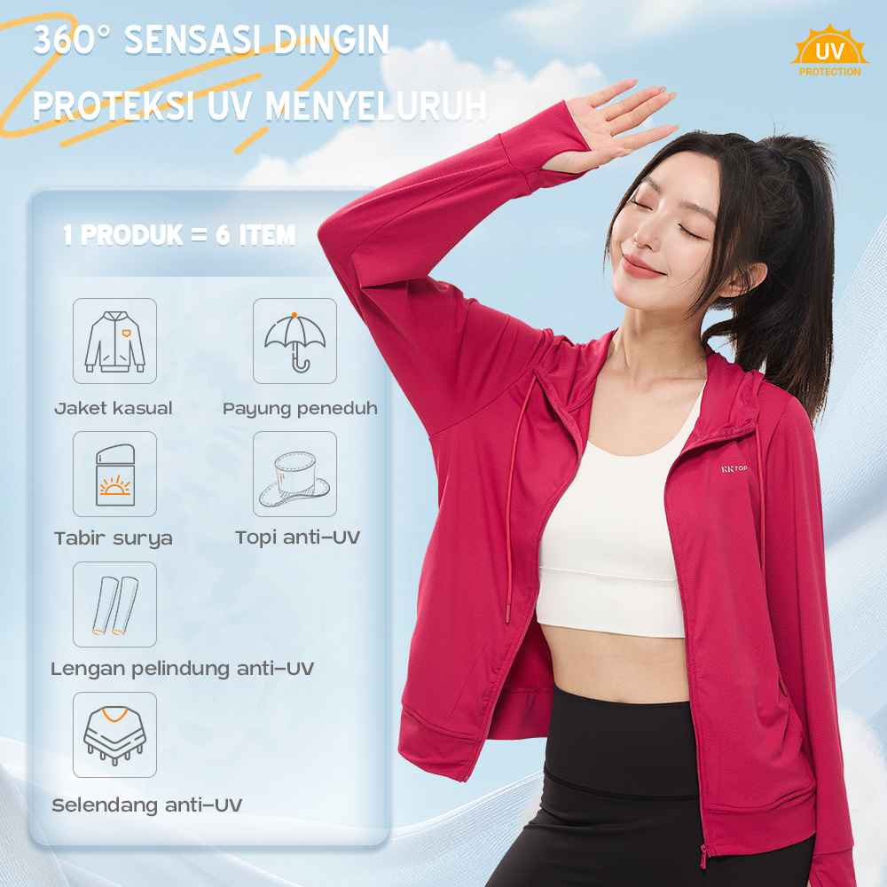 KKTOP Jaket Anti UV Wanita Hoodie Olahraga Jaket Airism Sport UPF50+ (J010)
