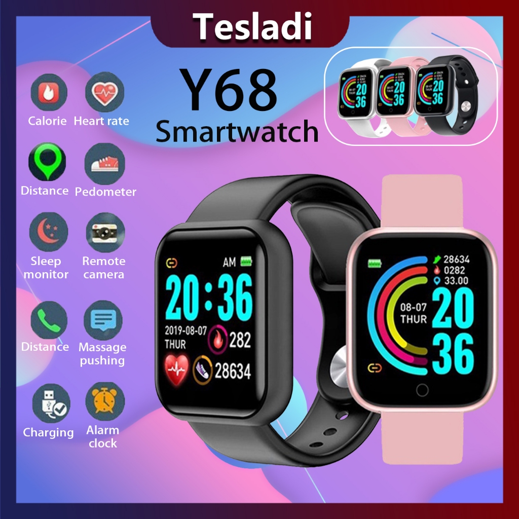 Tesladi SmartWatch Y68 Sport Tahan Air Smart Bluetooth Watch Heart Rate Gelang Pedometer Pelacak Kebugaran