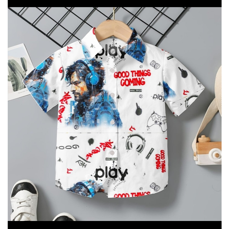 Kemeja Anak Motif Surfing Pantai Atasan Anak Usia 2 3 4 5 6 7 8 9 10 11 12 Tahun terbaru terlaris kemeja anak lengan pen