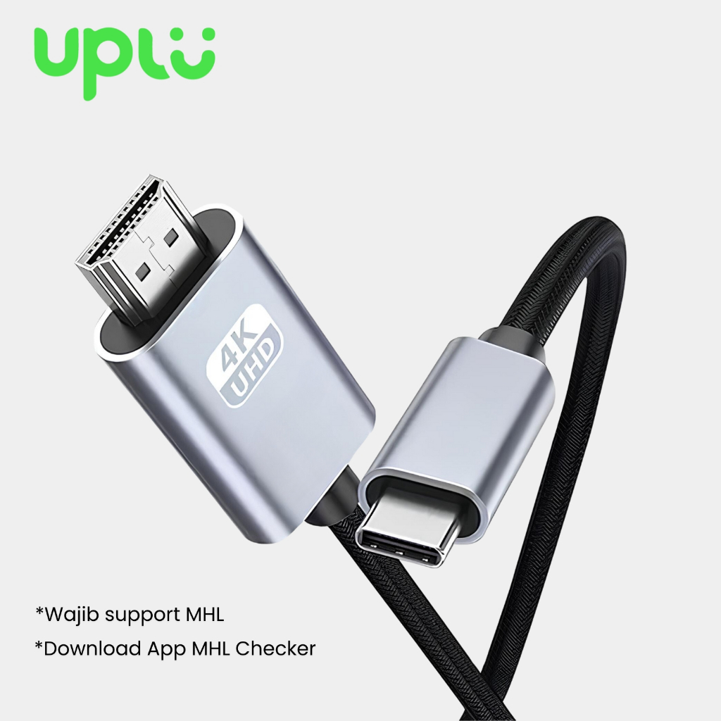 UPLU Adapter Kabel Type C to HDMI 4K UHD Converter Hp ke TV PD 100W Fast Charging