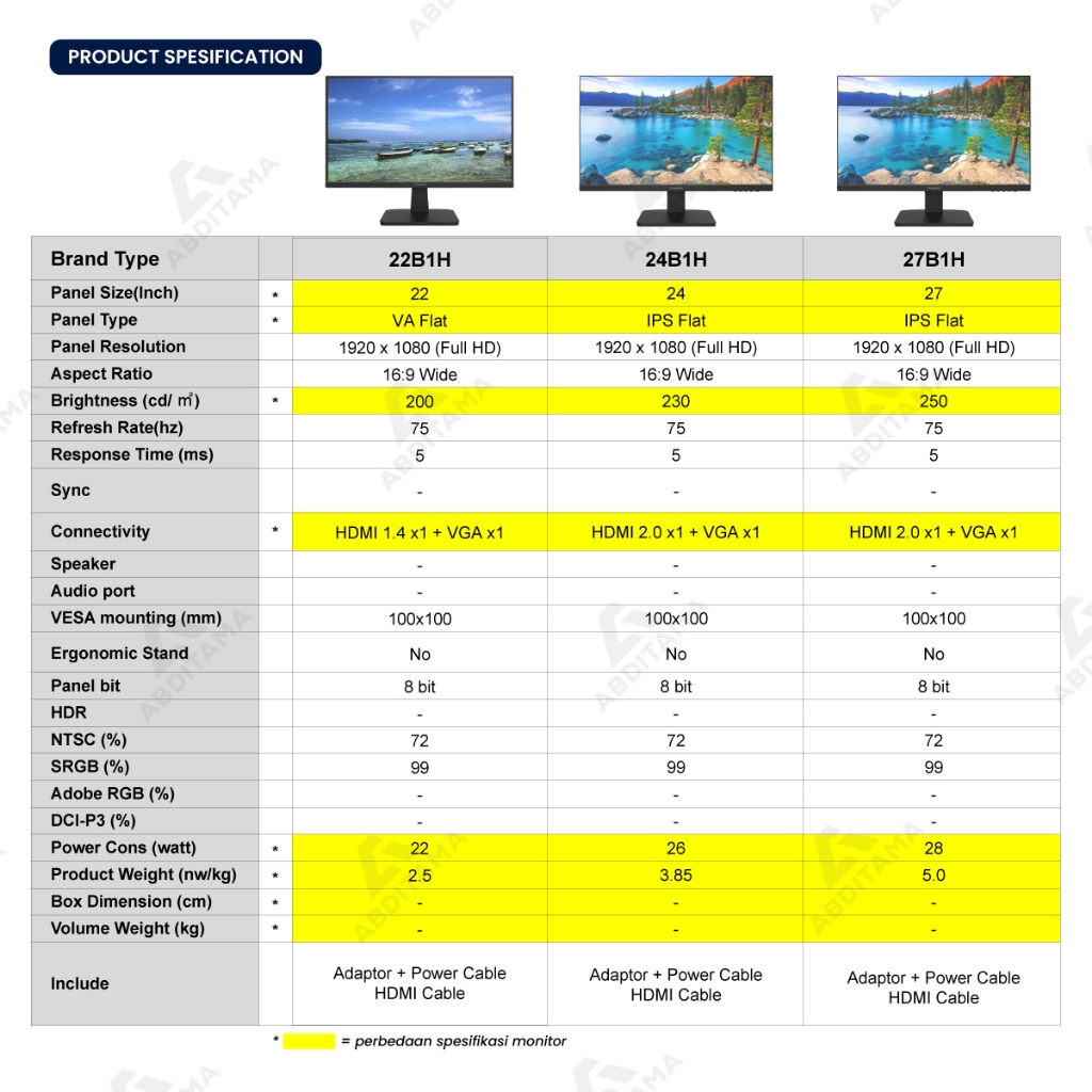 Monitor LED Business Monitor SKYWORTH 22" 24" 27" 22B1H 24B1H 27B1H 1920x1080 1080p FHD VGA HDMI Stylish Slim VESA