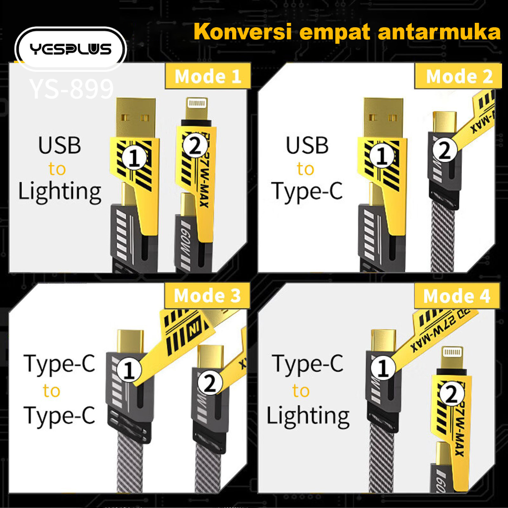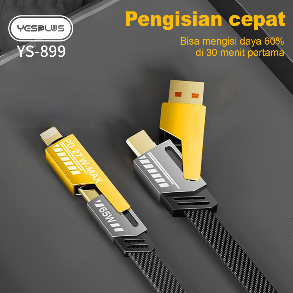 Kabel data YESPLUS YS-899 4IN1 Convertible Metal Fast DataCable 65W ft USB C USB A Multiple Charging