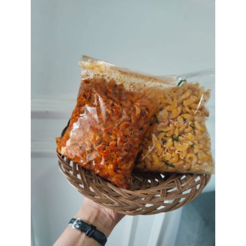 makaroni cikruh kriuk ori gurih daun jeruk,pedas gurih daun jeruk dan extra pedas gurih daun jeruk