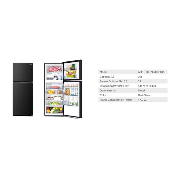 AQUA AQR DTM 265 CB KULKAS LEMARI ES 2 PINTU NEW TURBO COOLING 205 L GARANSI RESMI BATAM