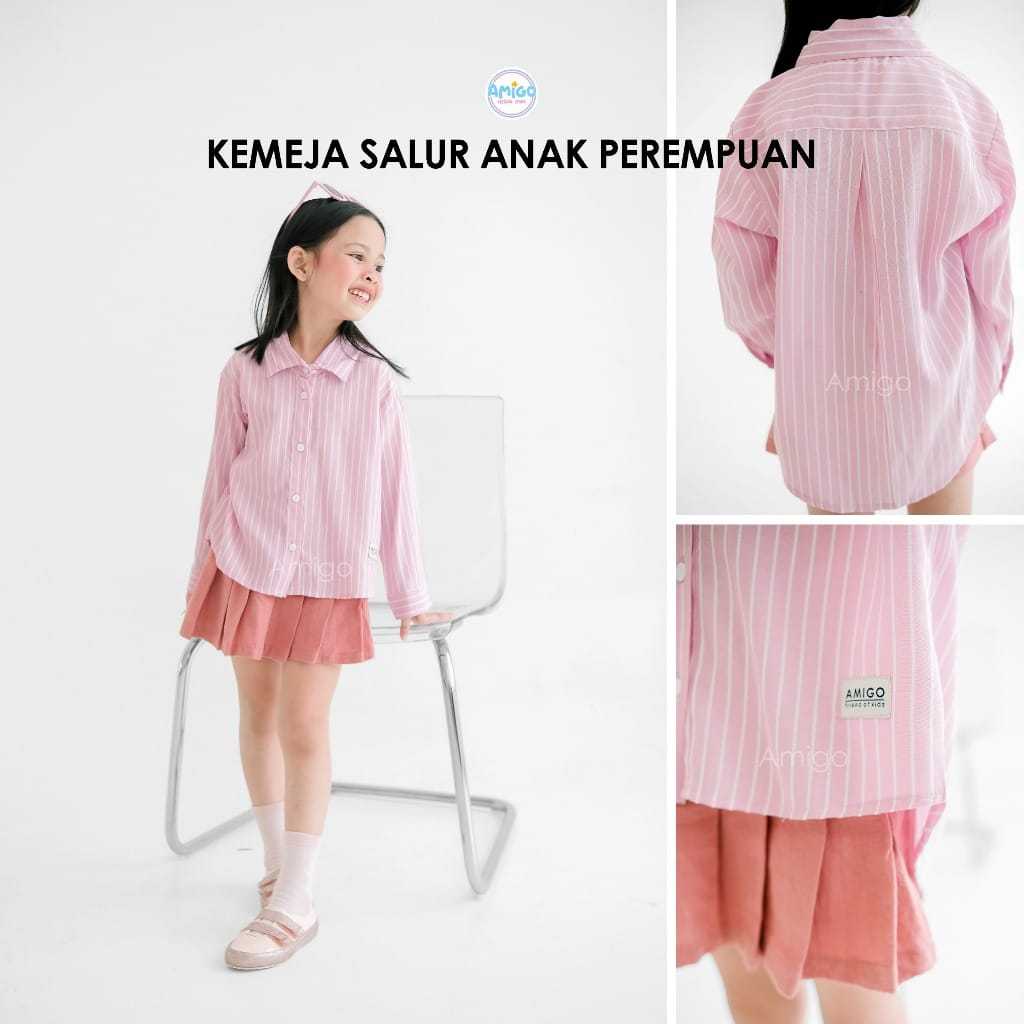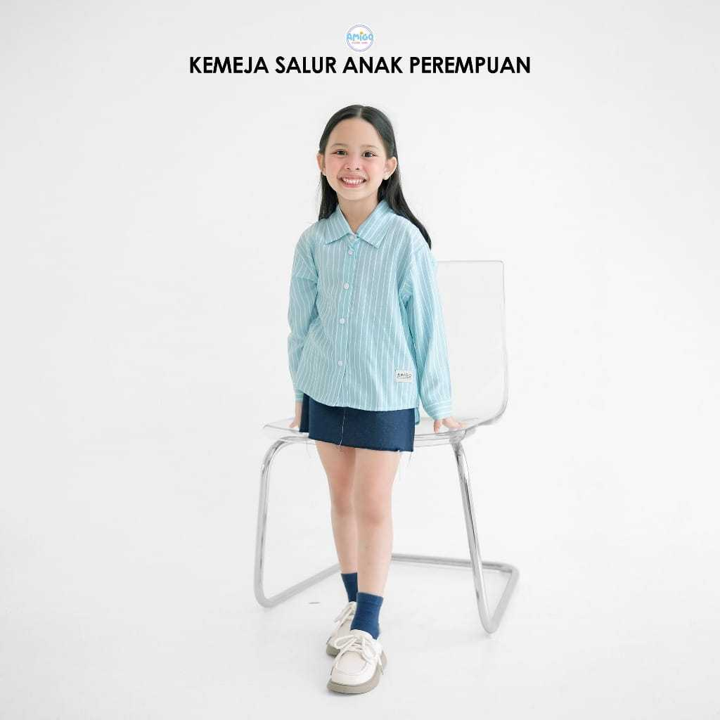 Kemeja Oversize Motif Salur Striped Anak Perempuan Lucu Viral Kemeja Kpop Korea 2-12 Tahun