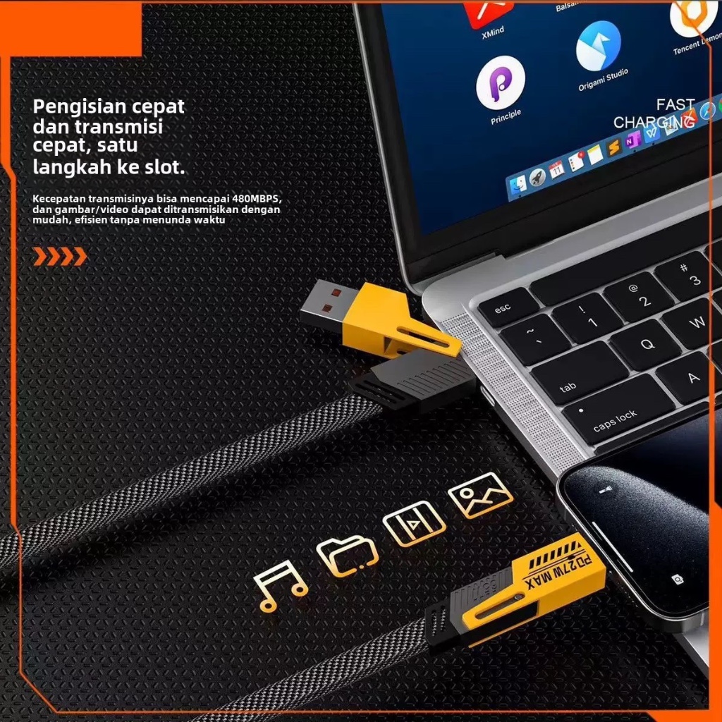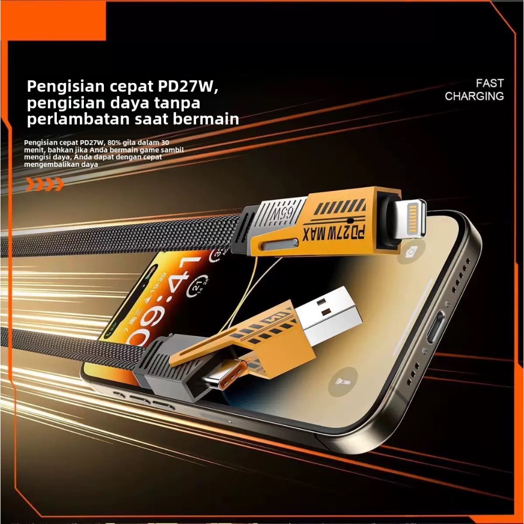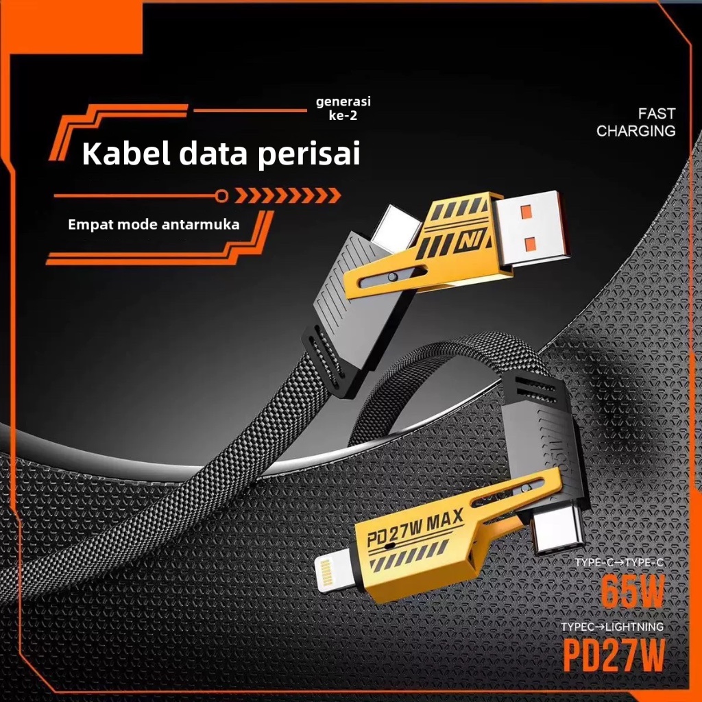 GUKOO Kabel Data 4-in-1 Fast Charge 65W PD - USB to Type C/Lightning Tahan Lama, Cocok untuk iPhone/Android/Laptop