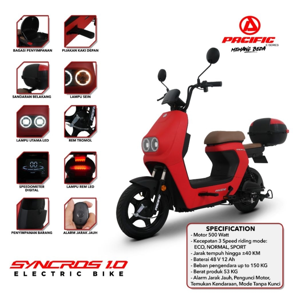 [Star] SEPEDA LISTRIK PACIFIC SYNCROS 1.0 500 WATT 48 V / 12 AH SPEDOMETER LCD DIGITAL BERGARANSI RESMI