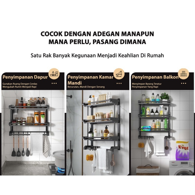 Rak Sabun Kamar Mandi Rak Kamar Mandi Stainless Hitam Dinding Rak Bumbu Dapur Dipasang Tanpa Harus Dilubangin Dibagian