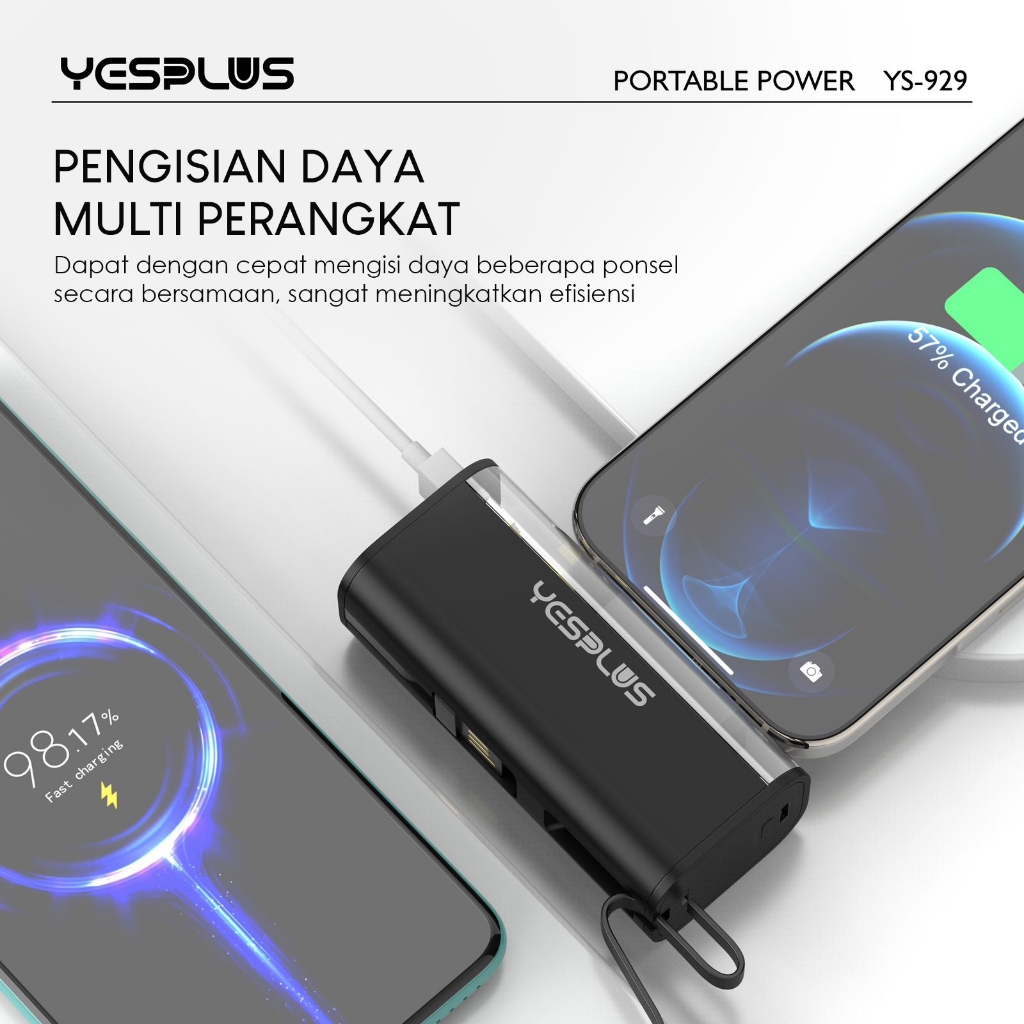 New Mini Portable Powerbank Transparan YESPLUS YS-929 Fast Charging Compatible PD 37W 5000MAH
