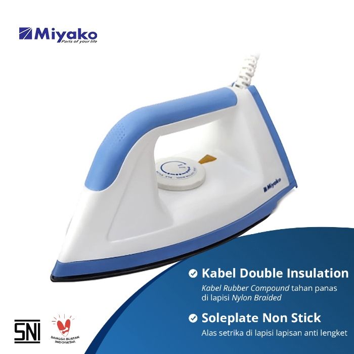Setrika Miyako EI10MGosokan Setrika ke anti lengket - 395 WATT - putih biru