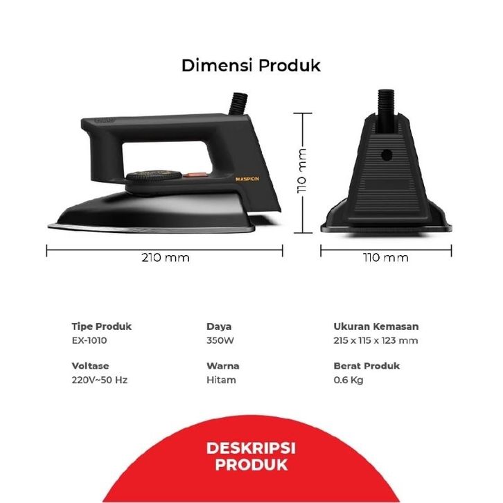MASPION EX 1010 Automatic Iron Setrika Non Stick Sole Plate 350 Watt