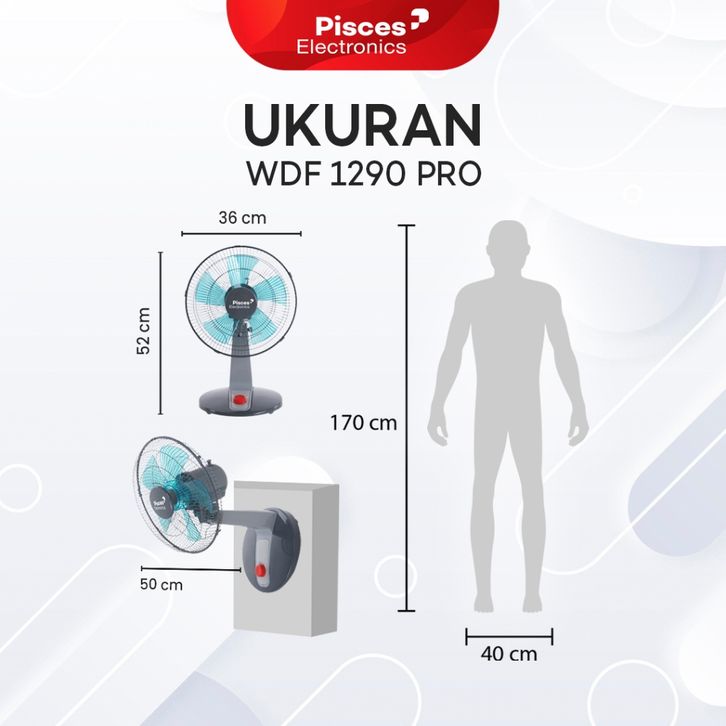Kipas Angin Duduk / Desk Fan 2in1 Meja & Dinding 12" Pisces 1290 PRO dengan Teknologi Bea