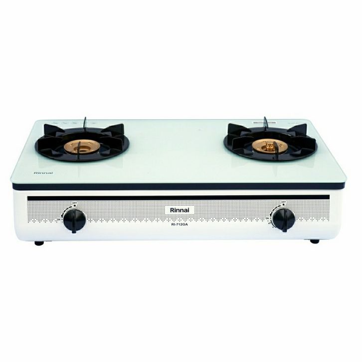 Kompor Gas RINNAI Kaca 2 tungku Schott RI 712 GA - 712GA B W api lilin RI712GA Black White