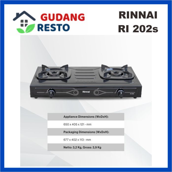 RINNAI RI-202s KOMPOR GAS / LPG 2 TUNGKU / MATA TEFLON RI202s / RI 202 SUN BURNER