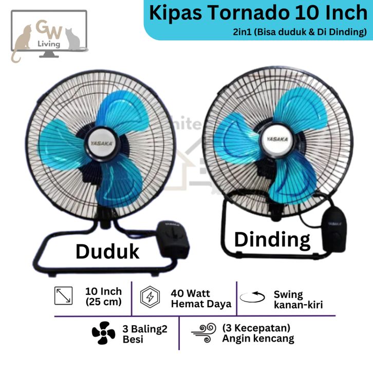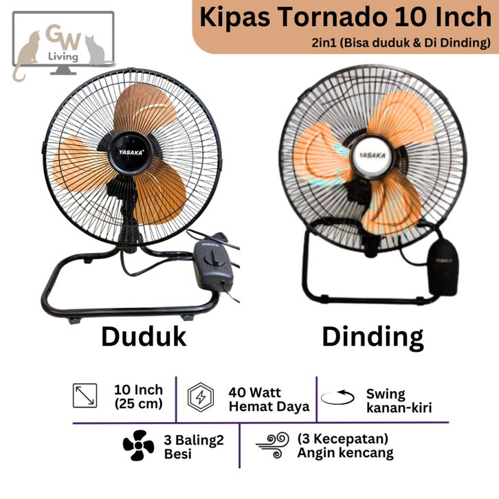 Kipas Angin Besi Tornado 10 Inch 2in1 Super Kencang Murah Hemat Daya