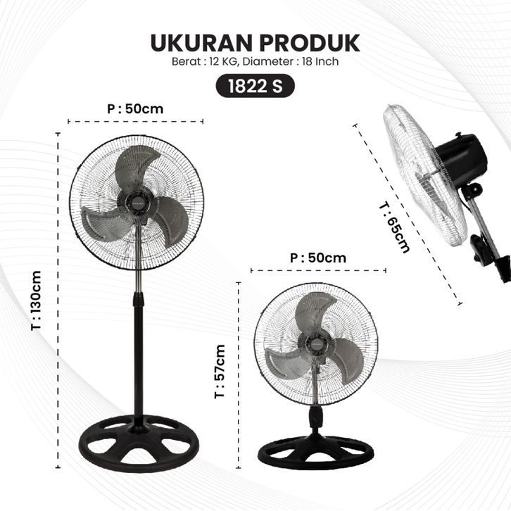 MITOCHIBA Kipas Angin Industrial 3 in 1 MT 1822S Fungsi Berdiri, Dinding, Meja