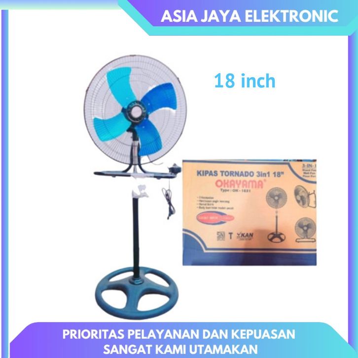OKAYAMA 18 inch Tornado Besi 3 in 1 Bisa di Meja,Dinding dan Berdiri OK 1831