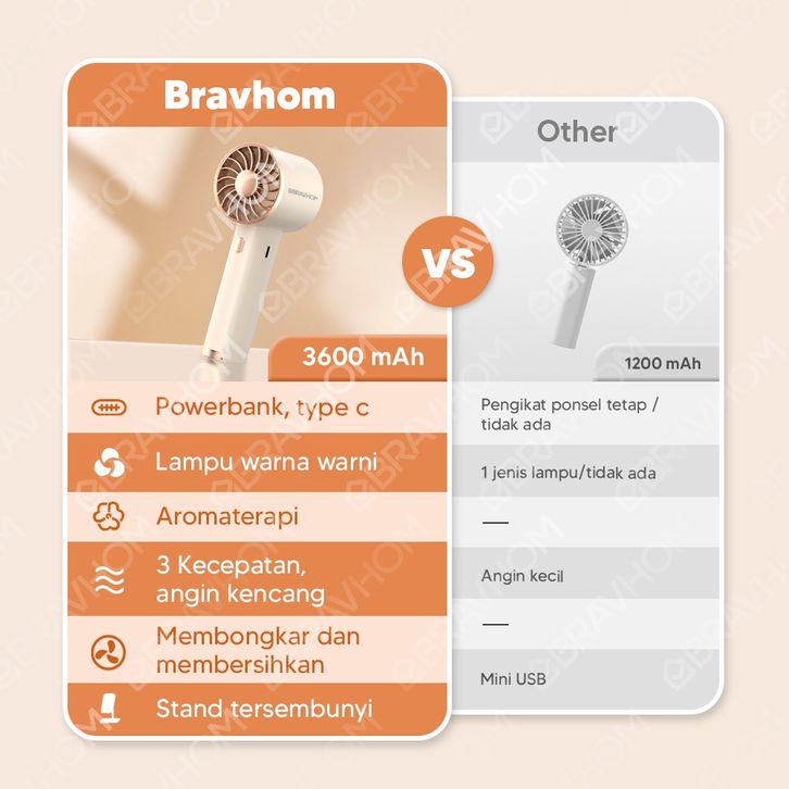 BRAVHOM Kipas Mini Turbo 3IN1 Powerbank 3600mAh Aromater Kipas Angin Portable 3 Speeds BL-FN16