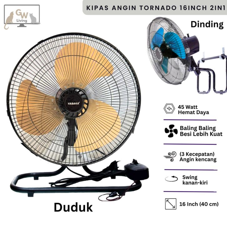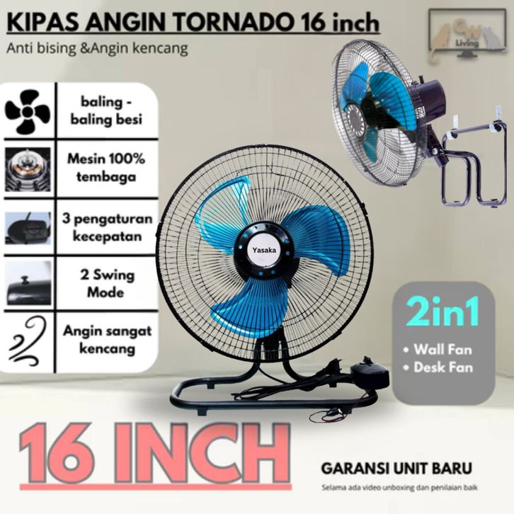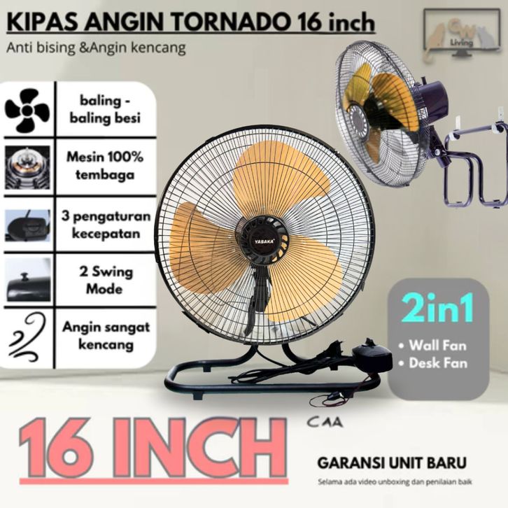 Kipas Angin Duduk Dinding Besi Tornado 16 Inch 2in1 Super Kencang Murah Hemat Daya