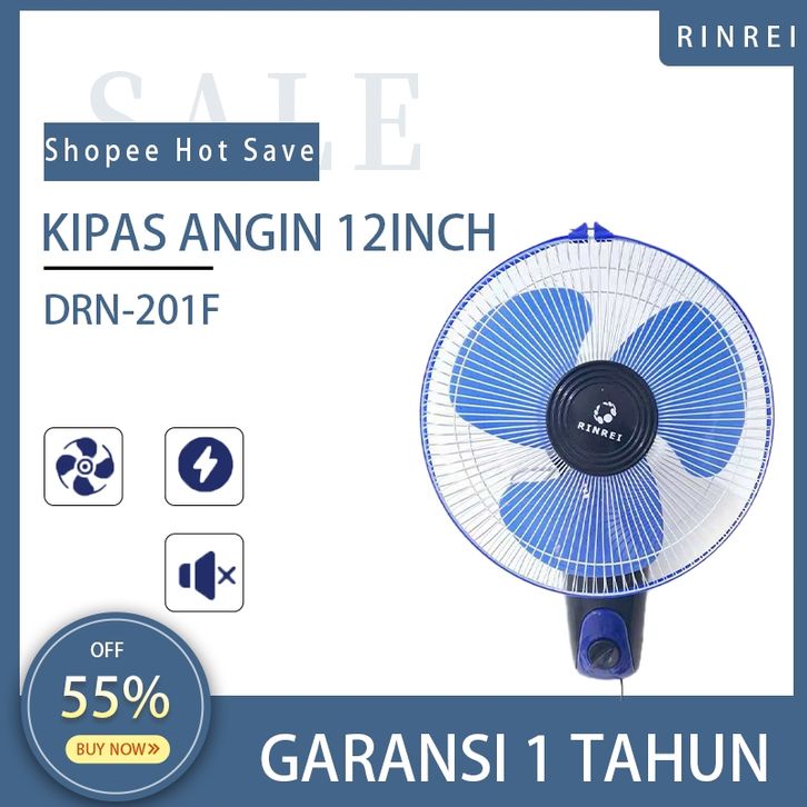 RINREI Kipas Angin Dinding/Tembok 12 Inch 3 Speed - Baling Besar, Angin Kencang, 180 Swing, Tanpa