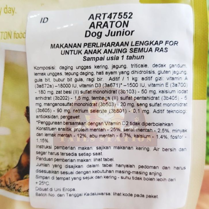 Dry Dog Food ARATON Lamb Salmon Junior Adult Puppy 3kg Makanan Anjing