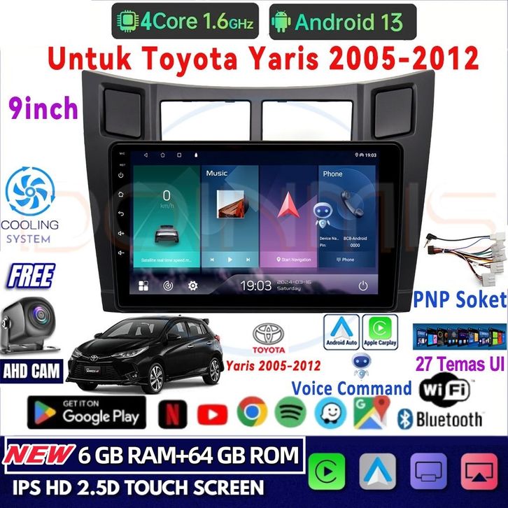 【Untuk Toyota Yaris 2005-2012】6G+64G Android 13 Head Unit Termasuk Frame/PNP Soket 9 Inch IPS Layer qq