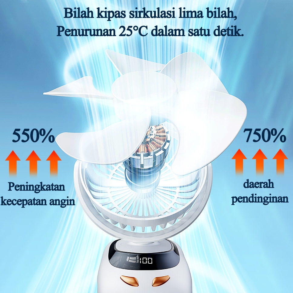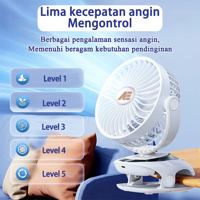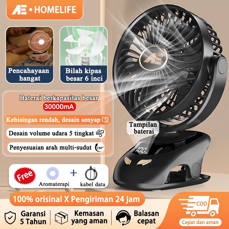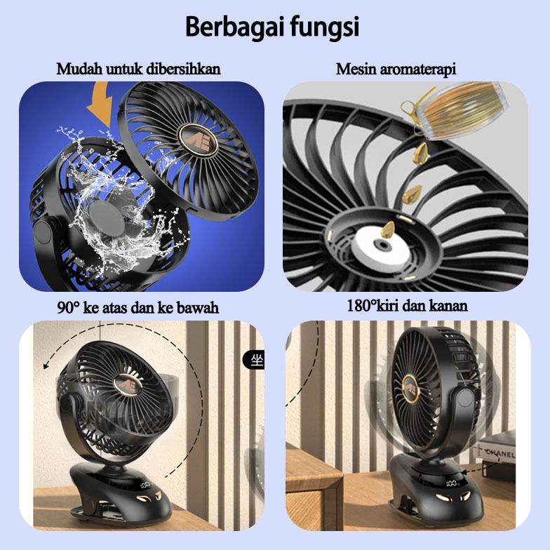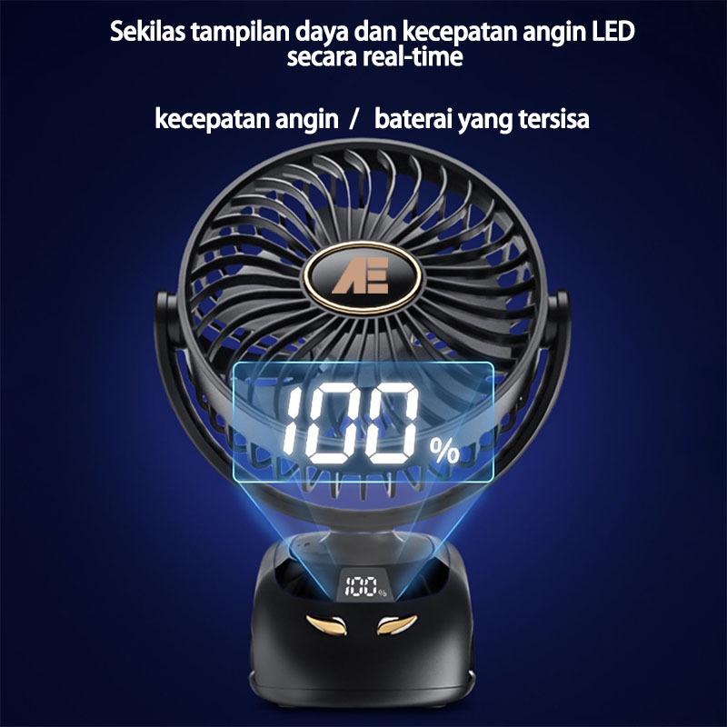 AE Kipas Angin Portable Mini 30000mAh Jepit Meja Usb Mini Fan Aromaterapi LED Display Kipas