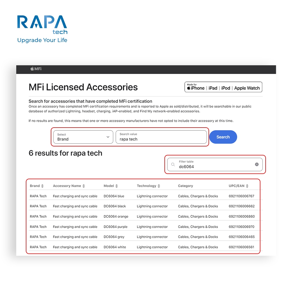 RAPAtech Power II Charger for iPhone 11 12 13 14 15 (PD 20W) MFi Kabel C to Lightning DC6064 Charger Mfi Charger iPhone Fast Charging Adaptor Cable