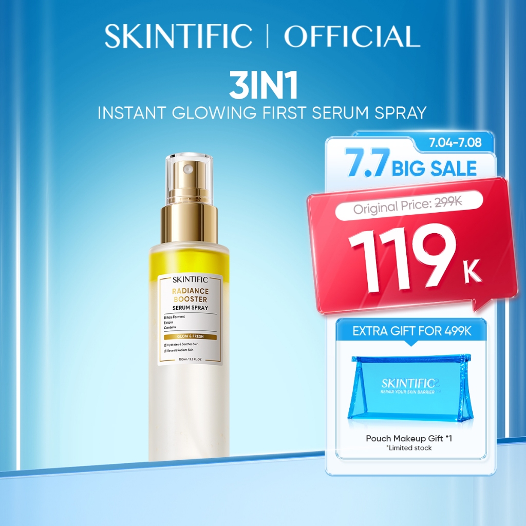 SKINTIFlC - Instant Glowing First Serum Spray 100ml | Radiance Booster Centella Kulit Lebih Halus Lembab Dalam Multifungsi Skincare Pendukung Make Up