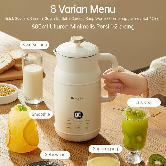 Soseki Soymilk Maker Mesin Susu Kacang Multifungsi 600Ml Blender Serbaguna Mixer Multi-Function Kabel Biru Listrik Minum