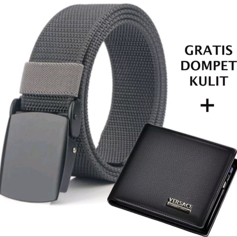 ikat pinggang pria BONUS DOMPET KULIT panjang 125cm gesper pria kerja dan Sekolah