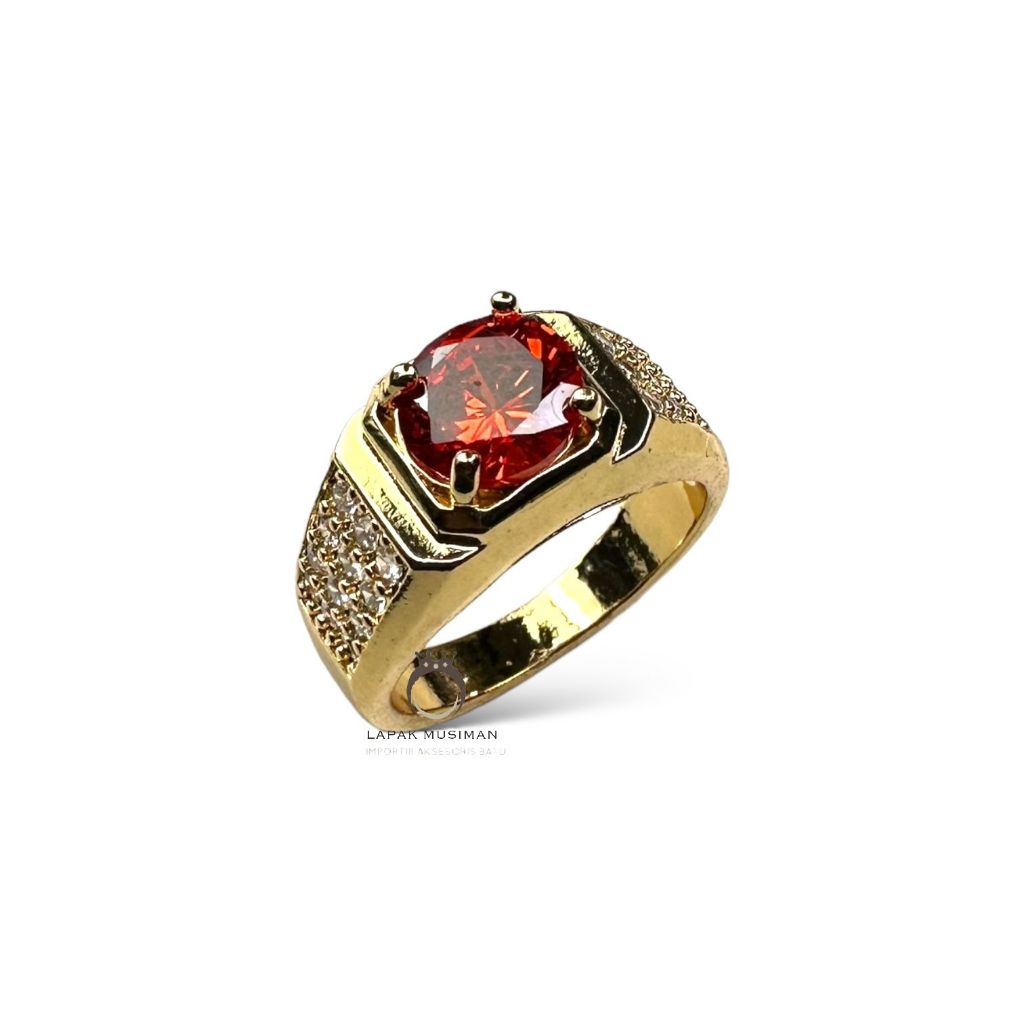 Cincin Pria Warna Kuning Emas Diamond Ruby King Saphire