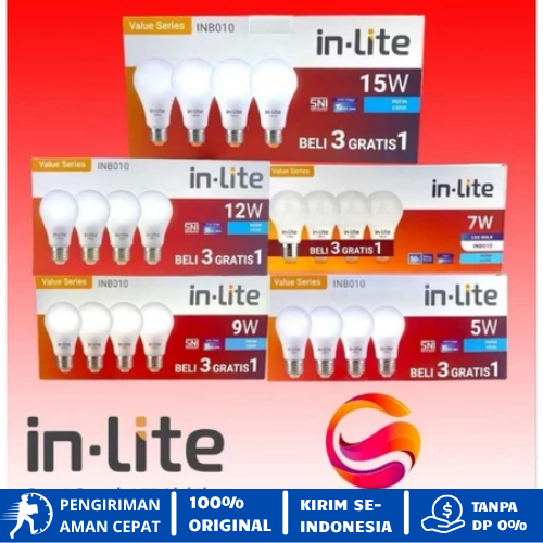 Lampu Led Rumah In-Lite Buld INB010 Value Paket 3 Gratis 1 5Watt 7Watt 9Watt 12Watt 15Watt 18Watt Bohlam Led Rumah